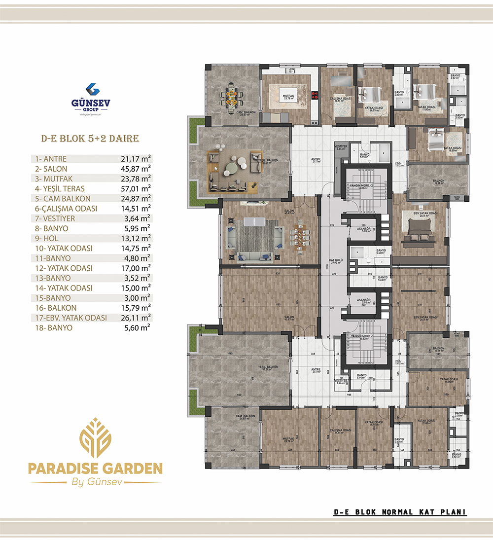 Osmangazi Mahallesi’nde Metro Market’in yanında yüksek standartları ve business class daireleri “lansmana özel fiyat avantajları ile satın almak için sizi satış ofislerimize bekleriz. Gaziantep’te satılık daire arayanların ilk tercihi Günsev İnşaat’tan yepyeni bir proje. Modern çizgisi ile Paradise Garden 4+1, 5+1, 5+2 daire seçenekleri sunuyor. Gaziantep Osmangazi Mahallesi’ndeki Paradise Garden projemiz 7 blok 143 daireden oluşmakta. 4+1 dairelerimiz 284 m2, 5+1 dairelerimiz 312 m2, 5+2 dairelerimiz 387 m2. Paradise Garden Projemizin Sosyal Donatıları : Kapalı yüzme havuzu, Sauna, Fitness Center, Türk Hamamı, Kapalı otopark, Basketbol Sahası, Voleybol Sahası, Toplantı salonları, Kamelyalar, 7/24 Güvenlik, Çocuk Oyun Alanı Jeneratör, Yürüyüş Parkurları, Süs Havuzları, Mekanik + Kompozit Dış Cephesi Yerden Isıtma Sistemi, Mantolama, Isı Ve Ses Yalıtımı, Akıllı Ev Sistemi, Panjur, Klima Sistemi,