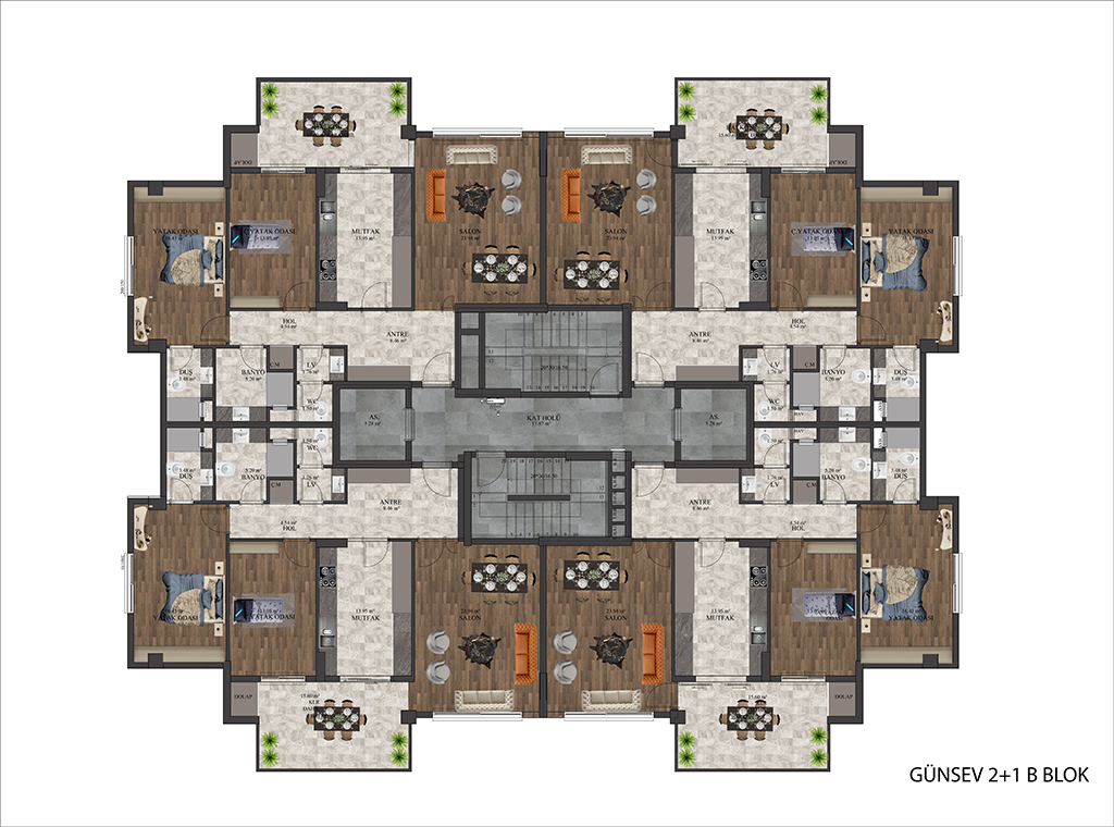 GAZİANTEPİN GÖZDESİ GÜNSEV SİTESİ-7 Modern, şık, yüksek sosyal donatıları ve konumu ile Günsev Sitesi-7 büyük ilgi görüyor. Gaziantep’in eski köy hizmetleri bölgesinde yükselen Günsev Sitesi-7 projesi 165 konuttan oluşuyor. 2+1 (138 m2) ve 3,5+1 (206 m2) daire seçenekleri ile İbrahimli bölgesinde oturmak isteyenlere harika bir seçenek sunuyor. Bölgede az olan 2+1 seçeneği ile farklılık oluşturan projede, Türk Hamamı, Sauna, Buhar odası, kapalı açık spor alanları, çocuk oyun alanları, kapalı otopark yer alıyor. Proje üç bloktan meydana geliyor. Günsev Sitesi-7 geniş aileler içinde güzel fırsatlar sunuyor. Büyüklerine yakın olmak isteyenler çekirdek ailelerine 3,5+1 alırken anne babalarına 2+1 daire alıyor. Aynı binada ailelere yaşama şansı sunuyor. Proje konumu itibari ile Devlet okulları, Özel okullar, Hastaneler, AVM’ler, Gaziantep Adliyesi, Recep Tayyip Erdoğan Sağlıklı yaşam parkı gibi cazibe merkezlerine yakınlığı ile dikkat çekiyor. Günsev Sitesi-7 ulaşım ağlarının merkezinde bulunuyor. İpek yoluna, Tramvaya, otobüs ve Dolmuş duraklarına yürüyüş mesafesinde. Otogara araçla beş dakikada ulaşma şansına sahipsiniz. Havaalanına ipek yolunda trafiğe takılmadan 30 dk’da ulaşabilirsiniz. Yeni gara hiçbir ışığa takılmadan 4 dakikada ulaşma imkânınız var. Şehrin manzarası, Dülük ormanlardan gelen temiz hava projeye değer katan özelliklerden. İbrahimli bölgesinde Güvenevler’de Günsev kalitesi ile inşa edilen projeye yoğun ilgi var. "Daha güzel günler için" GÜNSEV İNŞAAT